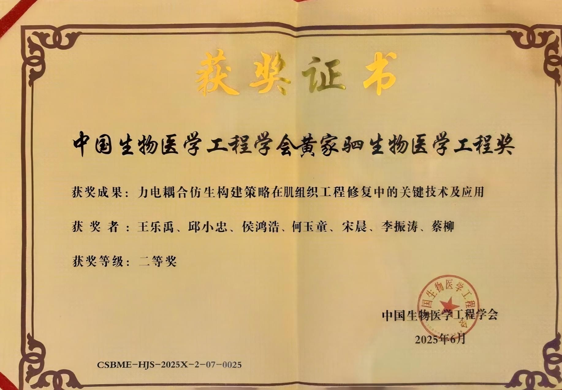 王乐禹教授团队申报的“力电耦合仿生构建策略在肌组织工程修复中的关键技术及应用”项目,荣获黄家驷生物医学工程基础研究类二等奖。项目第一完成单位为91短视频