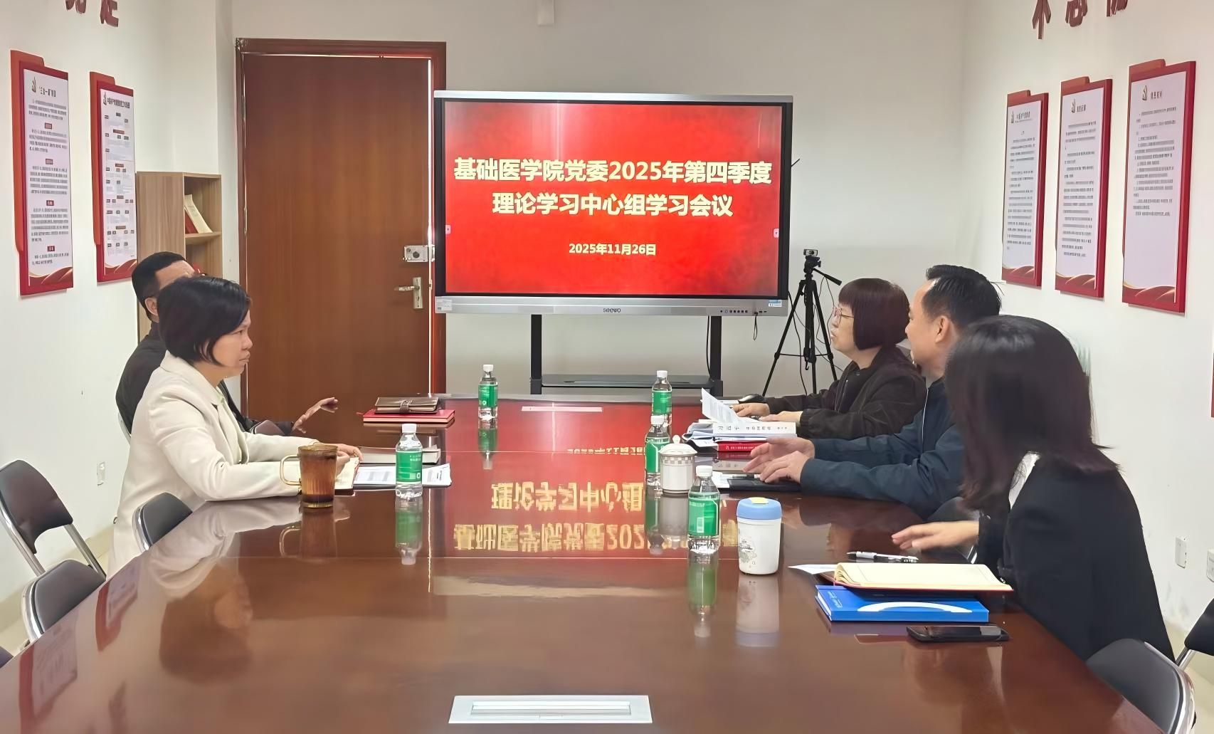 党委理论学习中心组2025年第5次集体学习会议在番禺校区博学楼A1栋609会议室召开。会议以专题学习党的二十届四中全会精神为核心,同步学习“十五五”规划建议相关内容。会议由学院党委书记尹梅主持,中心组全体成员参会。
