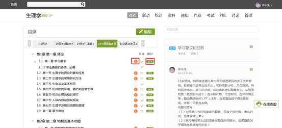 按照生理学教材章节内容,建立了配套的教材内容、PPT、微课视频,并设定为学习“任务点”,纳入平时成绩。在视频中插入“弹题”,并设置答错强制回看,自动督促学习,自动检测学习效果。每一章学完后有配套作业,设定为学习任务点,纳入平时成绩,从而督促学生学完后及时复习消化所学内容。