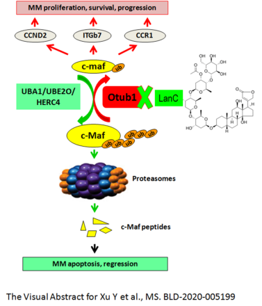 Xu Y et al. Targeting the Otub1/c-Maf axis for the treatment of multiple myeloma.Blood. 2020 August 25. //ashpublications.org/blood/article-abstract/doi/ 10.1182/blood.2020005199。