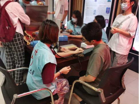 活动中,市民们先后参观了3D全息虚拟仿真实验室、遗体捐献纪念馆和人体标本馆,在科技中感受人体的奥秘,从感恩榜上了解到一个个遗体捐献志愿者生前平凡而伟大的故事,从了解标本制作中惊叹人体结构的精妙,从而感受到生命的珍贵。在其中的科普互动环节,市民们戴上手套,在志愿者协会成员的介绍下仔细观察骨骼的结构,亲手鉴别骨的种类;同时,通过志愿者的介绍,市民了解到血压计的测量原理,并现场进行了血压测量。