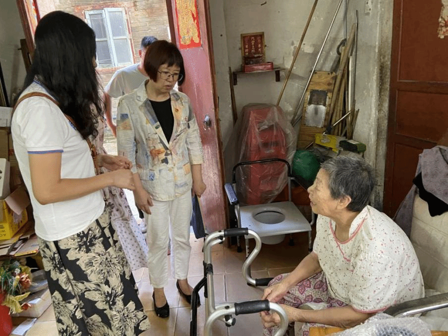 在走访慰问中,共建双方党员一起深入困难群众家中,与群众面对面交流,了解他们的身体健康状况、家庭生活情况和具体困难,送上助行器、家具等慰问品。