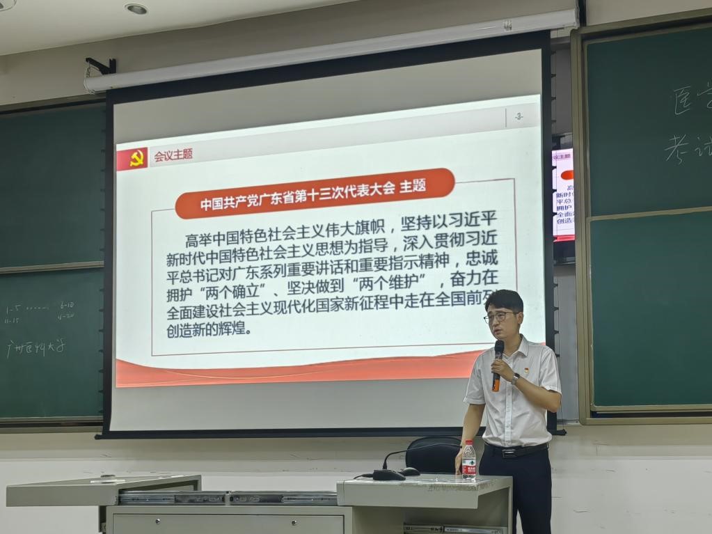 党总支召开学习贯彻省第十三次党代会精神宣讲会,特邀学校党委学习贯彻省第十三次党代会精神宣讲组成员刘涛教授作专题讲座。龙大宏书记主持,全体师生党员参加本次宣讲会。
