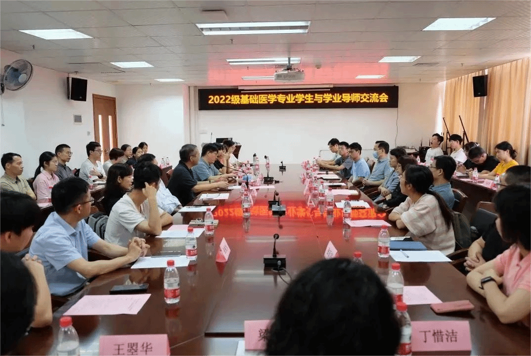 4月20日中午,2022级基础医学专业学生与学业导师交流会在A1-602召开。我院领导班子、学业导师、学生办、教学办相关人员及2022级基础医学专业学生参加会议。会议由基础医学系龙捷主任主持。