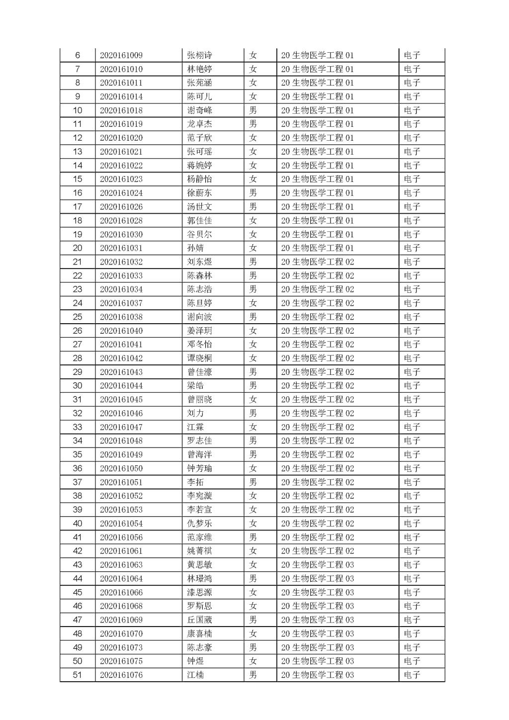 91短视频 生物医学工程专业2020级培养方向分班公示