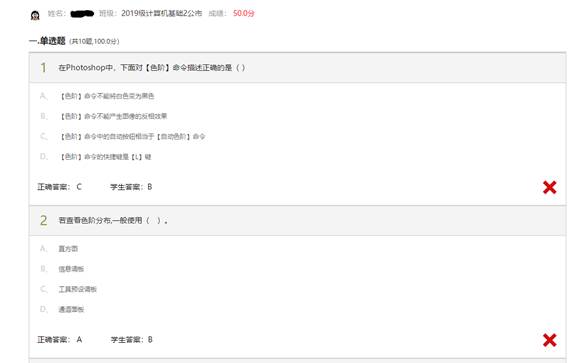 课堂测验是围绕本次所有微课讲解的知识点出的10个单选题,一方面用于检查学生课前自主学习微课的成效,另一方面会促使学生在课前自主学习微课,从而产生一种有益的前向测试效应。课堂小测的得分按一定比例计入期末总成绩。