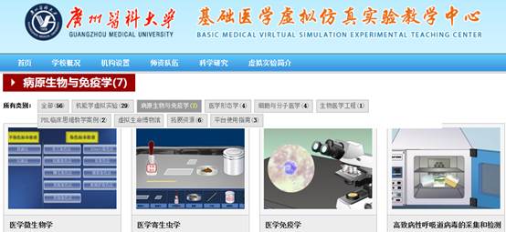 第四种形式:虚拟仿真实验。基础医学虚拟仿真实验教学平台涉及本学科约40个项目,可部分满足学生学习要求。平台中的虚拟仿真实验采用动画虚拟、真实视频等多种方式,使学生从直观、微观,亲自操作等多方面感受真实和虚拟实验。实验课的在线教学与虚拟仿真实验有机结合,有效促进了学生牢固掌握各种规范的基本实验技能。