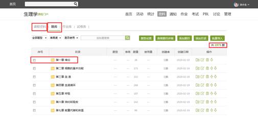 首先在平台建立了丰富的生理学课程资源,如教材、PPT、微课和课堂视频。建立了含单选题、多选题、名词解释、问答题、案例分析题的题库,共计约2000道题。这为疫情下的在线教学“战役”准备了精良充足的“武器弹药”。