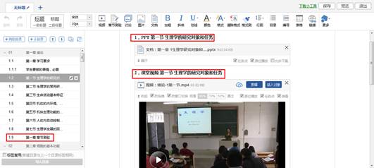 按照生理学教材章节内容,建立了配套的教材内容、PPT、微课视频,并设定为学习“任务点”,纳入平时成绩。在视频中插入“弹题”,并设置答错强制回看,自动督促学习,自动检测学习效果。每一章学完后有配套作业,设定为学习任务点,纳入平时成绩,从而督促学生学完后及时复习消化所学内容。