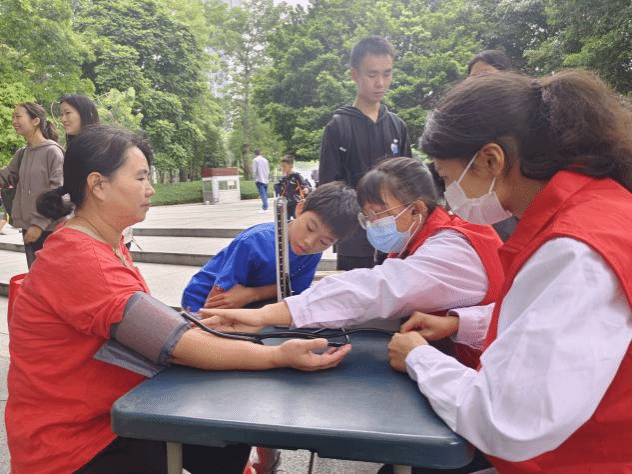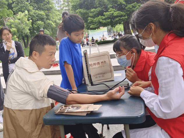 跟随着志愿者的引导,市民来到测血压的摊位测量血压。志愿者告知其血压情况并根据测量结果对市民们的生活习惯提出建议,如改变饮食习惯、运动习惯等。由此,市民们在对自己的健康状况有进一步了解的同时也收获了科学的生活指引。