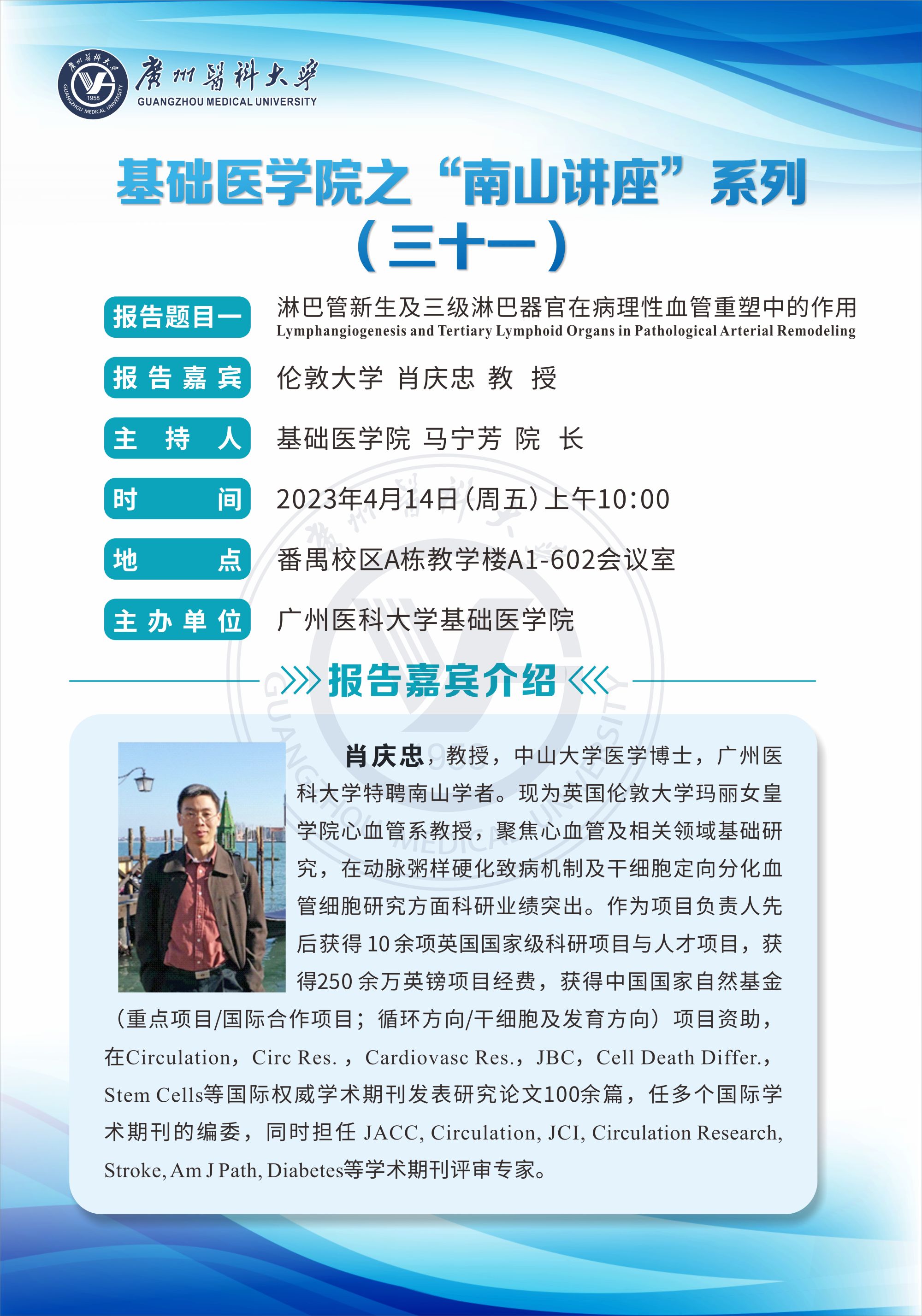 学术讲座--淋巴管新生及三级淋巴器官在病理性血管重塑中的作用