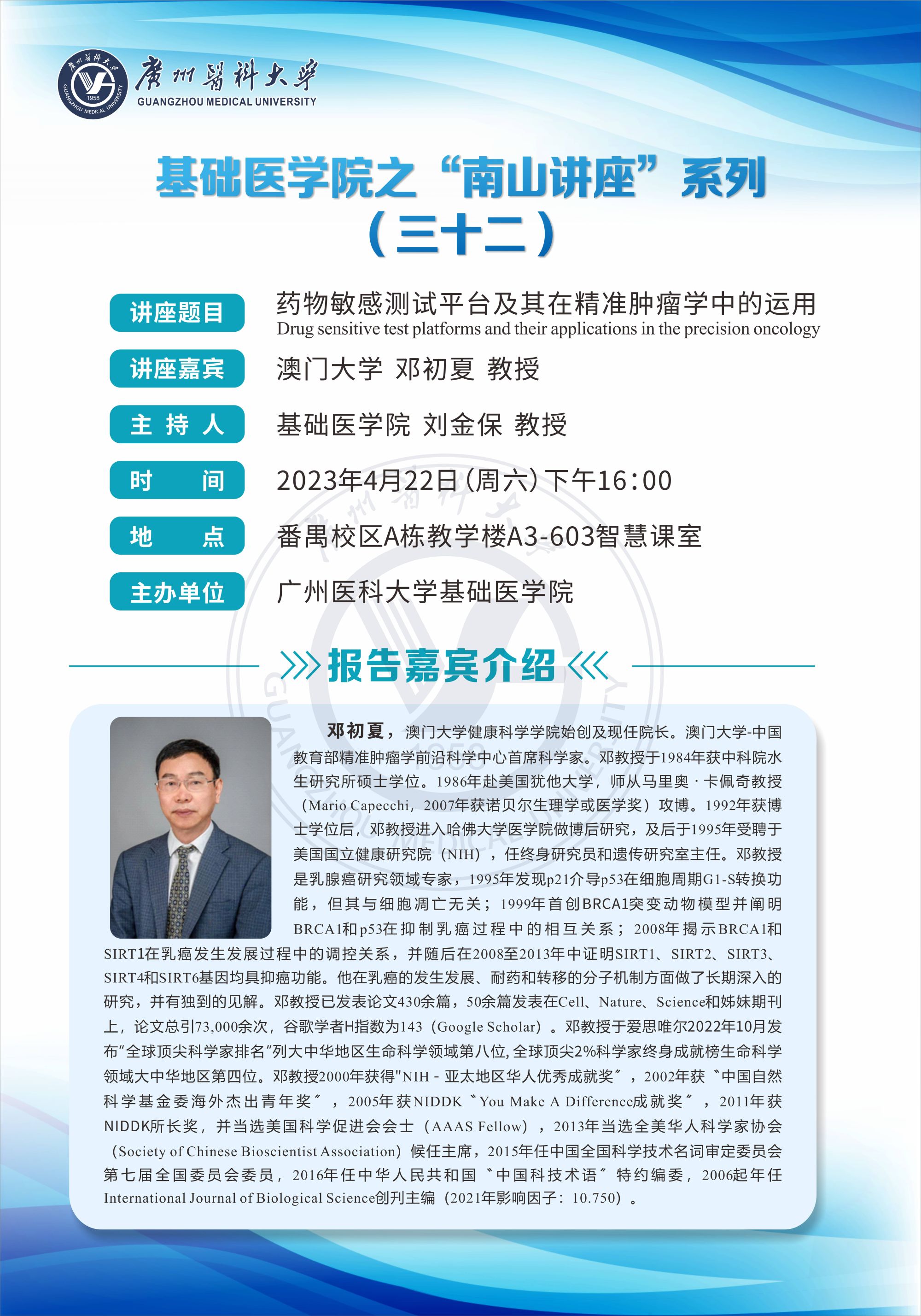 学术讲座--药物敏感测试平台及其在精准肿瘤学中的运用