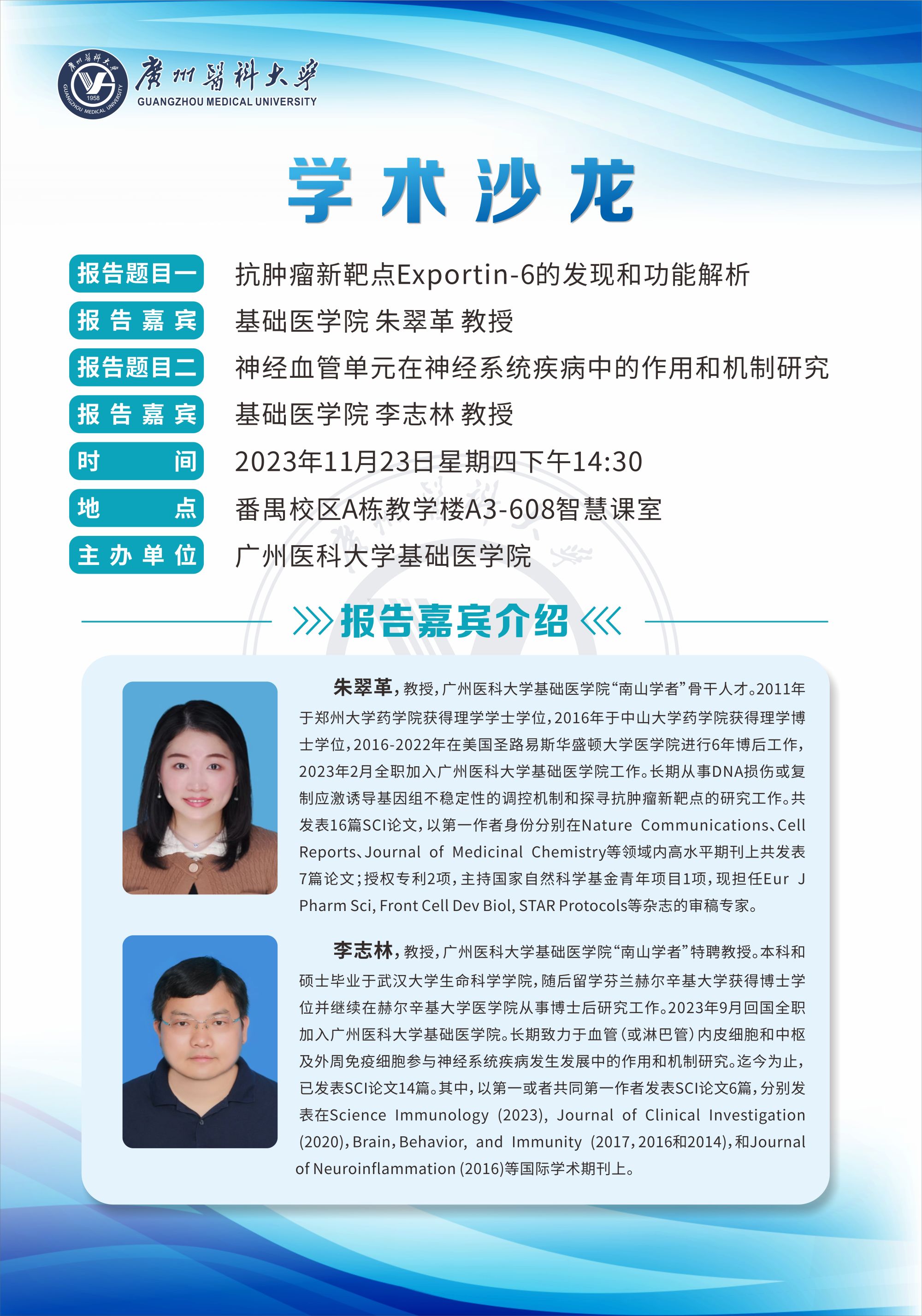 学术沙龙-- 抗肿瘤新靶点Exportin-6的发现和功能解析&神经血管单元在神经系统疾病中的作用和机制研究